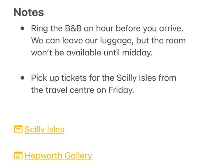 In the Notes app, you can add links to other notes and to websites right there in your note.