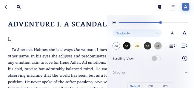 You can change the font, size and colour of text, as well as adjust margins and spacing to make reading more comfortable.