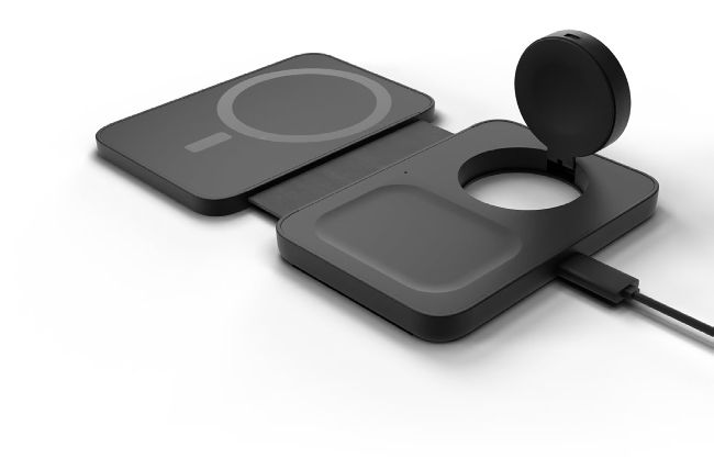 The Mous MagSafe Compatible 3-in-1 Portable Charger can charge three items at once.