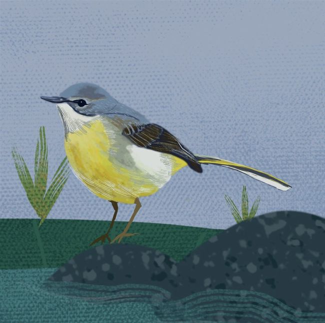 It is no surprise that these highly noticeable birds, with a yellow belly and flicking tail, have gathered cultural meanings from people. In Scotland their presence was thought to predict bad weather; indeed there could be an association as they do move down from upland areas in cold weather. During the Highland Clearances, folklore linked sightings of them around a house with imminent eviction for the householders. If on seeing grey wagtails you pause and don’t move towards them, they will continue about their business, allowing a good view of their busy foraging. Grey wagtails walk or flutter short distances to catch invertebrates, wade in shallows picking prey out of the water and fly out from waterside perches to catch insects on the wing. Their tail flicking, which gives rise to the name ‘wagtail’, is thought to be signalling to potential predators that they are alert and are not an easy target. Alongside their plumage colour and pattern, their tail distinguishes them from other wagtails; grey wagtails have a particularly long tail that is the length of their body again.