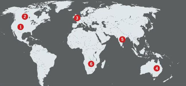 1. United States 2. Canada 3. United Kingdom 4. Australia 5. India 6. South Africa