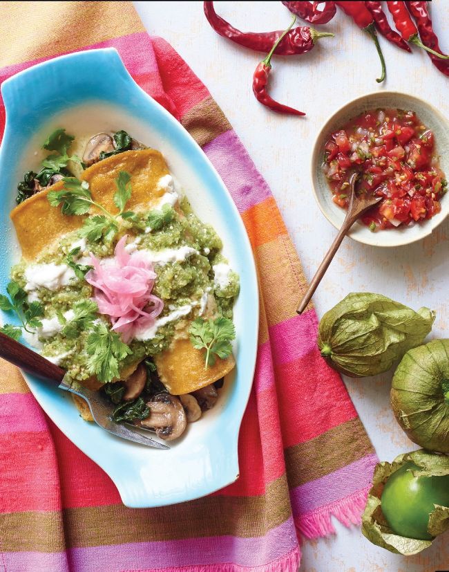 SPINACH AND MUSHROOM ENCHILADAS VERDES