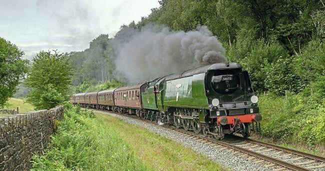 FLYING ALONG THE IRWELL VALLEY: Southern Locomotives Limited-owned Bulleid Pacific No. 34072 257 Squadron hauls its first passenger-carrying service on the East Lancashire Railway of 2023, the 09.15 from Bury at Lumb Woods on Saturday, July 8. Discussions are ongoing as to how long it will remain at Bury. Meanwhile, firebox work and tubing are almost complete on the ELR’s own SR Bulleid Pacific, No. 34092 City of Wells. The line has announced it plans to hold a steam gala on October 13-15.