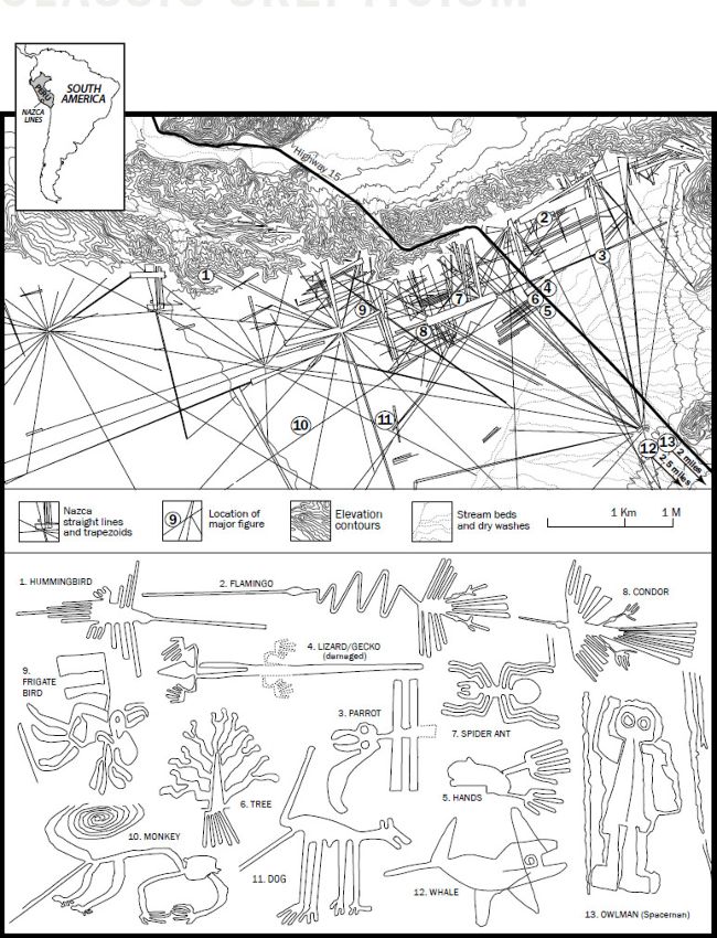 (Names for the geoglyphs vary greatly, especially for bird-like figures.)