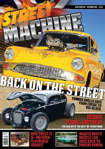 Street Machine - Issue 18 The days are getting shorter but here's a ray of sunshine - a bright yellow, big-block Pro Street Anglia on the cover of the December issue. Or how about a fenderless, roof-chopped Beetle with Japanese turbo six-pot power? Or a classy Seventies custom Transit, 40 years late? Or a Pontiac that's been out a while but is still minty fresh, now with injected Poncho motorvation? There's all that, plus all the late season shows and events, the last races of 2018, all the usual fun and much, much more in December's Street Machine, out now!