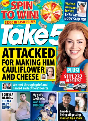2536 In the latest issue of Take 5, dive into a whirlwind of unexpected stories! From healing hearts through grief to a shark attack that turned into a career, and a heartwarming journey of love and surprises - like a new baby bump! Plus, uncover jaw-dropping medical mysteries and shocking triumphs.