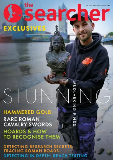 Exclusively on the cover is mudlarker Simon Bourne (Si-Finds), whom shares his best finds to date from the Thames foreshore, including a large Queen Victoria bust and some Roman pots. Other highlights within the covers are an article about ‘Hoards, and how to recognise them’ by Mike Sinclair, who explains that scattered hoards aren’t always obvious and suggests ways to recognise them. Adrian Marsden writes an in-depth article about coin (or nummular) brooches, the various types and how and why they were popular. Two Roman cavalry swords discovered at a Go Detecting Midlands rally by Glenn Manning, have led to a settlement discovery after an excavation. The swords, and other associated material, have since been kindly donated by Glenn and the landowner to the Corinium Museum. Our technical piece this month, seeing as it’s the summer season, is our annual Beach Testing article. This year, Neil Ham and Scott Sibbald tested the Rutus Versa, Nokta Legend, XP Deus II with new HF coil, Garrett Vortex and Minelab Manticore in dry and wet sand and the surf too.