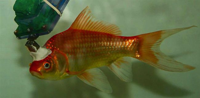Scientists used a not-so-subtle device to monitor the neural signals in goldfishes’ brains. Can you spot it?