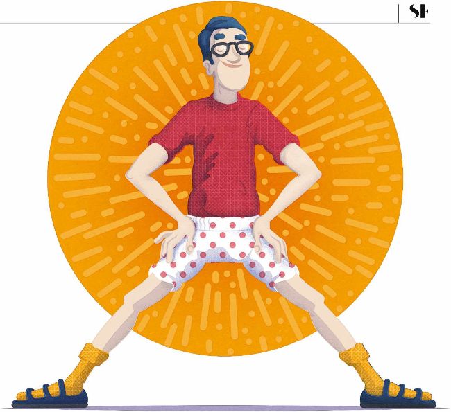 A power pose is essentially any kind of body position that involves taking up more space. Imagine standing with your legs astride and your hands on your hips, or – as used in the seminal research on power poses from 2010 – leaning back in your chair with your legs up and your hands behind your head. The opposite is a contractive pose that involves taking up less room, such as hugging yourself with your legs crossed.