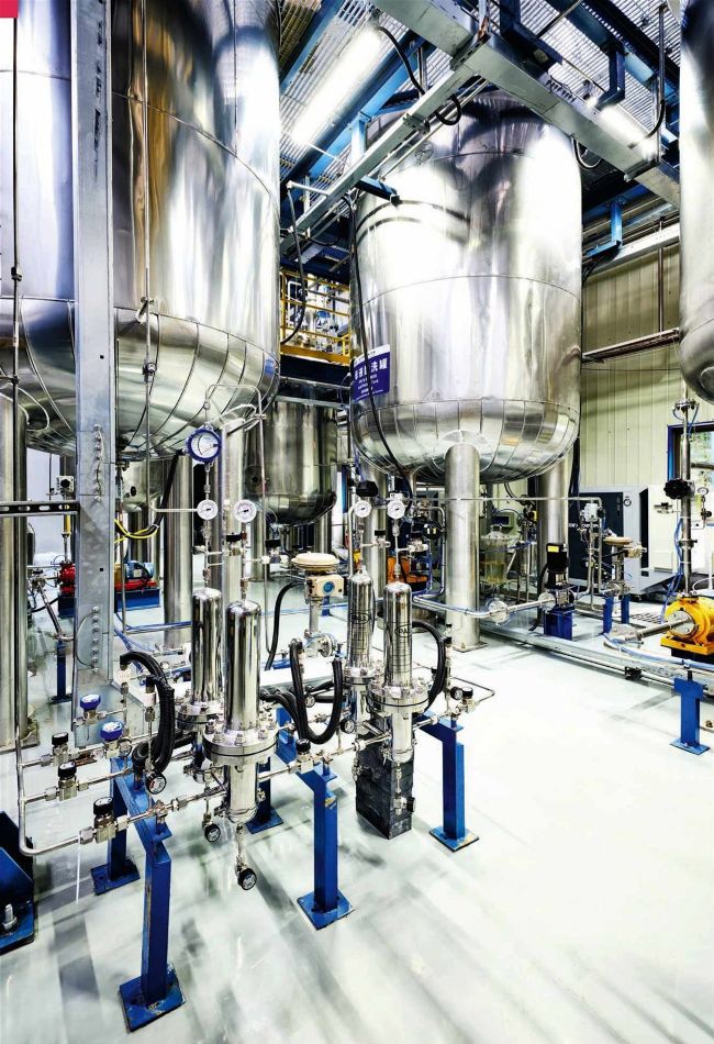 2. Liquid scintillator mixing vats in the Surface Liquid Scintillator Building. Scintillator is a cocktail of a linear alkylbenzene combined with a solvent.
