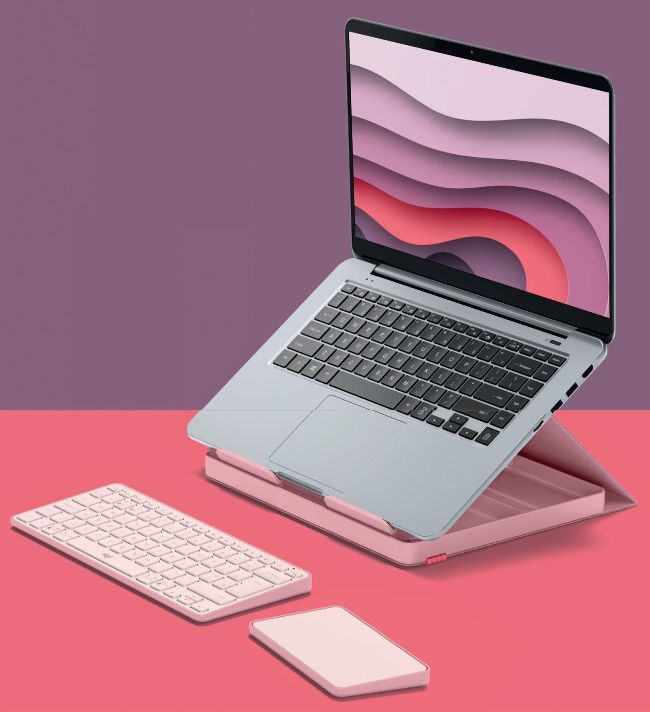 My laptop sits on a throne of cardboard boxes. This serves two purposes: it cuts out neckache and it prevents people on video calls from being subjected to the sight of my dangling double chin. Realising just how many of us endure such a makeshift workingfrom-home setup, Logitech has come up with a rather cute solution. The Casa Pop-Up Desk is disguised as a coffee-table book by night, but by day it folds out into a laptop stand. A wireless keyboard and trackpad are hidden inside, so you can create your own comfortable workstation when you need it.