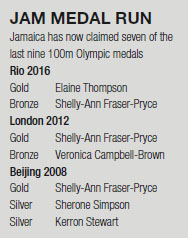 TWO-TIME champion Shelly-Ann Fraser-Pryce might have missed out on an historic third 100m gold, but Elaine Thompson ensured that the title remained with Jamaica as she graduated from world 200m silver medallist to Olympic 100m champion.