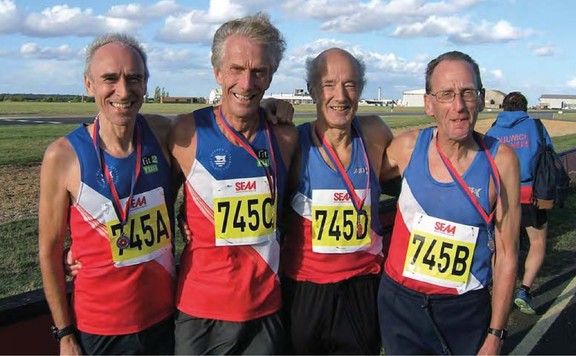 Oxford City’s M60 took victory, helped by their long-serving last-leg runner John Exley. Kent AC finished second six minutes in arrears.