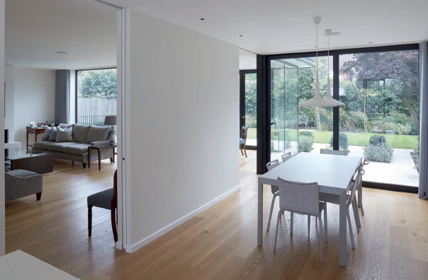 Internal pocket doors offer an unobtrusive doorway in this scheme by Giles Pike Architects