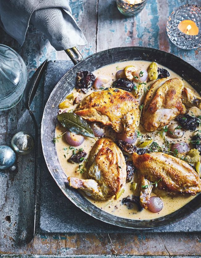 CLASSIC FRENCH FLAVOURS Chicken supremes in mustard, cream and prune sauce