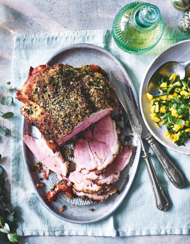 Jalapeño, coriander and lime salt crusted ham with mango salsa