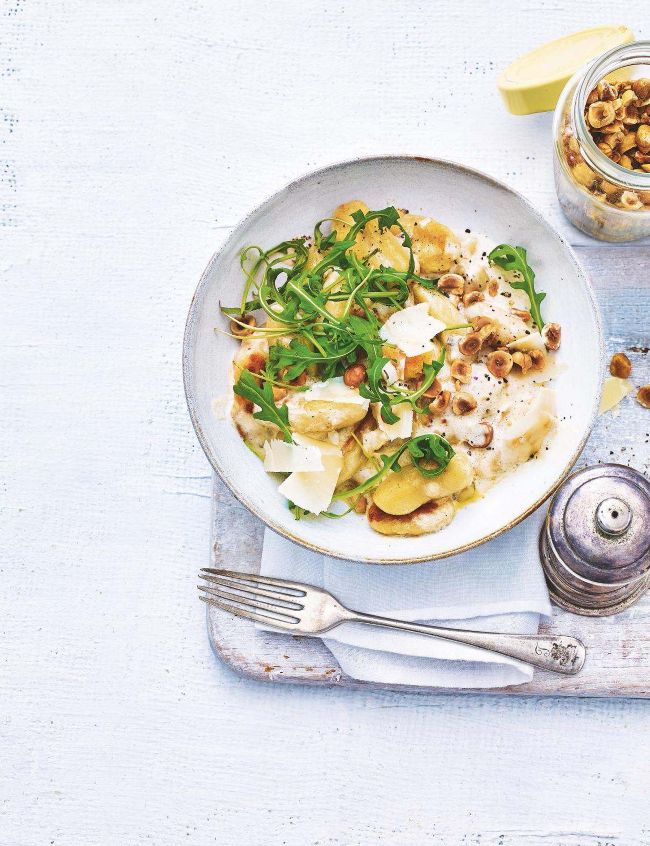 Gnocchi with roasted hazelnuts, garlic and anchovy cream