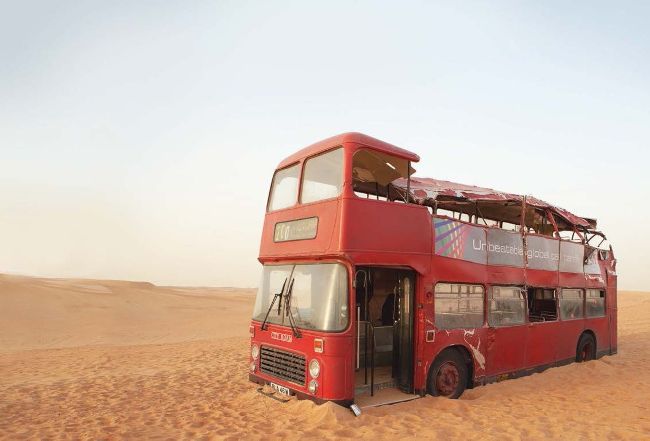 Two buses doubled for the number 200 seen in 200th story Planet of the Dead (2009) - one in studio in Wales (inset), and the ill-fated other on location in Dubai.