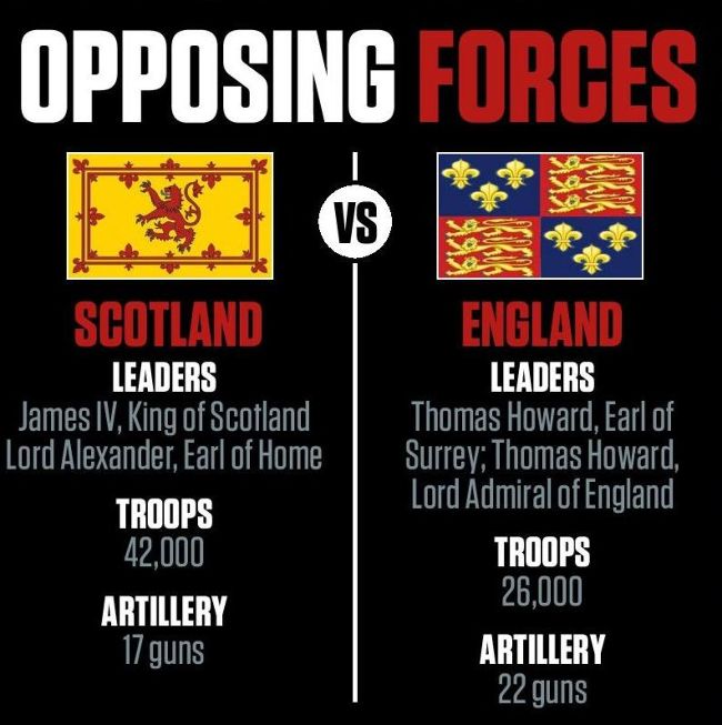 The main commanders of the Scottish army, which numbered an impressive 42,000, were of course James himself, and Lord Alexander, the Earl of Home. Home had charge of Scotland’s difficult East March on the border with England and was well-acquainted with warfare. But he possessed no experience of commanding large numbers of troops in a set-piece battle.