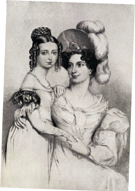 Victoria as a girl with her own mother, Victoria of Saxe-Coburg-Saalfeld, the Duchess of Kent