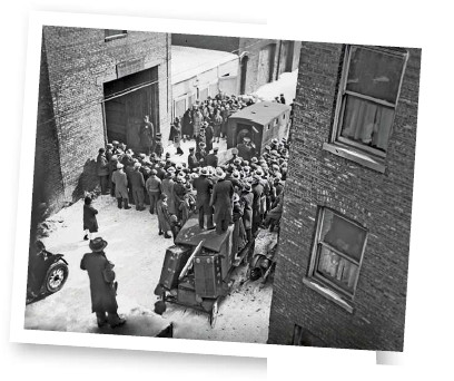 Crowds gather as police remove the bodies of those killed in the St Valentine’s Day Massacre