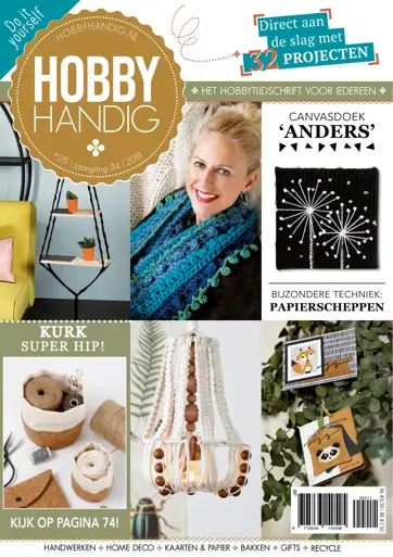 Het laatste nummer van 2018 alweer. Met volop inspiratie voor leuke DIY projecten voor in huis, zoals een leuke hanger van houten planken en macramékoord, een vrolijk, gehaakt streepjeskleed en een kroonluchter van geknoopte draden en kralen. Heb je in de winter ook zo last van koude voeten? Met de behaaglijke voetenzak is dat verleden tijd! Verder gaan we aan de slag met trendy materialen, zoals plantenbakken van beton, sieraden van Fimo klei en opbergzakjes van kurk. En recycling op zijn best: een journal gemaakt van zelfgemaakt papier. Deze techniek wordt in deze uitgave uitgelegd. Ben je een paperlover? In deze uitgave vind je veel leuke kaarten, zoals de kruissteekkaarten met diertjes en de 3x babykaarten. Of maak de green leafs cadeaudoosjes en in deze uitgave ook handletterinspiratie. Leuk voor je last minute kerst- of nieuwjaarskaarten.