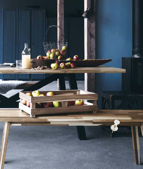 Skogsta dining table, £350; bench (60cm), £25; bench (120cm), £40; stool, £15, all Ikea