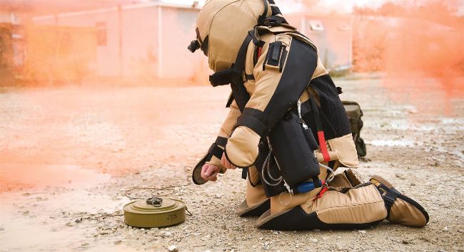 How this bulky armour defends bomb disposal technicians from searing heat, violent explosions and flying fragments