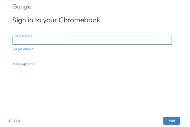 The standard login screen can be seen in this screenshot. A Google account is required to log into CloudReady.