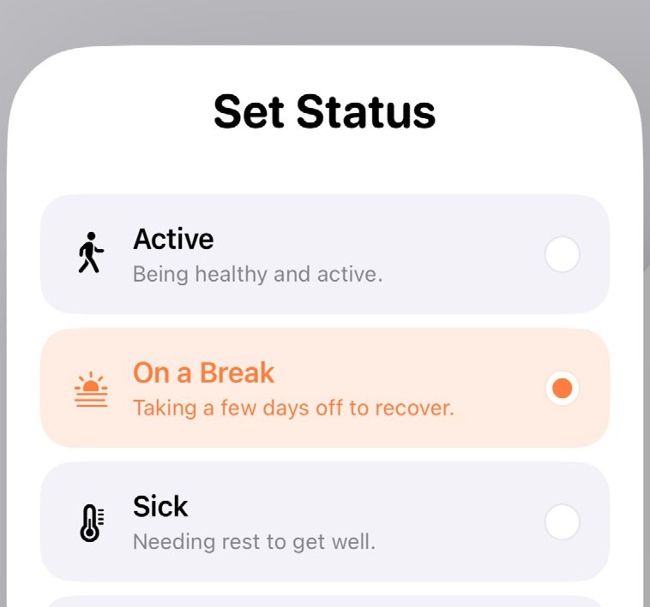 Tap your profile image or select Go Gentler and you can change your Activity Status if you’re on a break or sick.