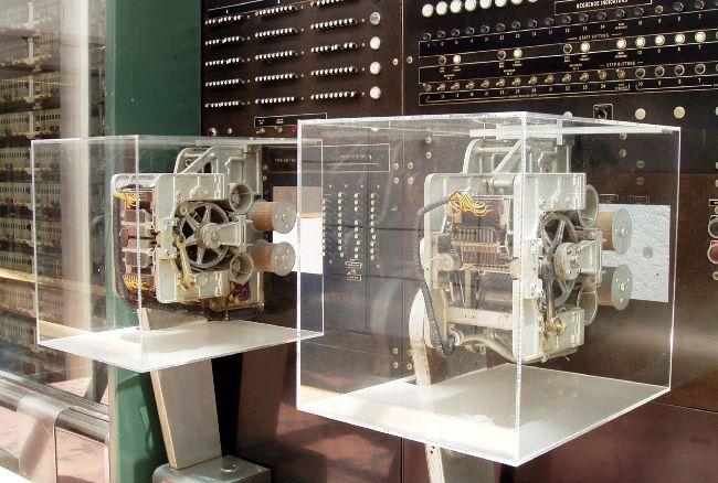 Parts of the Harvard Mark I computer on display. Made by IBM, and proposed in 1937, John Von Neumann ran the first program on it in 1944 under the Manhattan Project.
