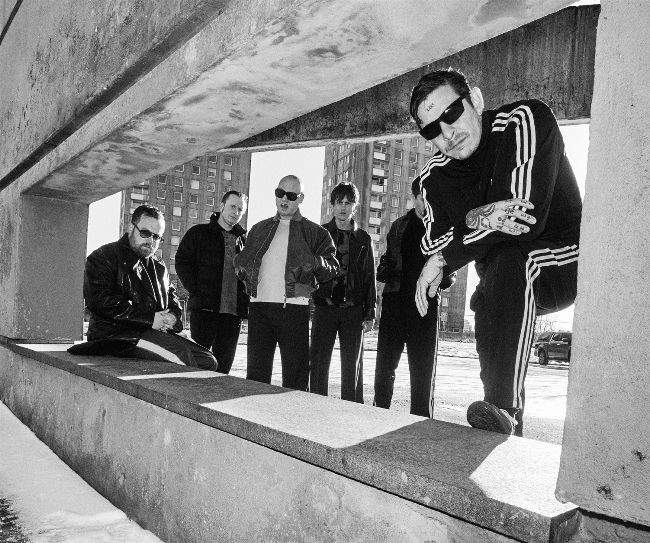 High-rise: Viagra Boys (from left) Tor Sjödén, Linus Hillborg, Henrik (Benke) Höckert, Elias Ljungqvist, Oskar Carls, Sebastian Murphy.