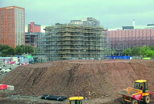 HIDDEN GEM: This is a view of the Grade IIlisted entrance to Curzon Street station building in Birmingham on October 13, which has been covered in scaffolding as part of its upgrade and incorporation into the city’s new HS2 station.