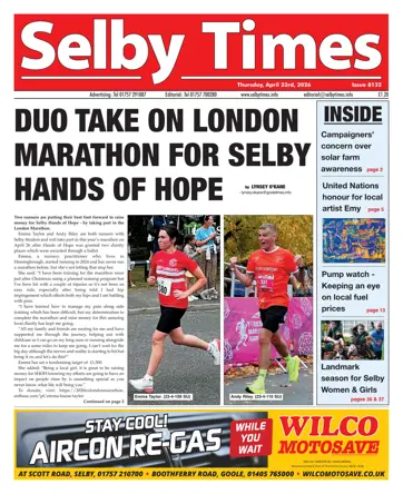 Vous trouverez ci-dessous une sélection d'articles dans Selby Times April 16th 2026.