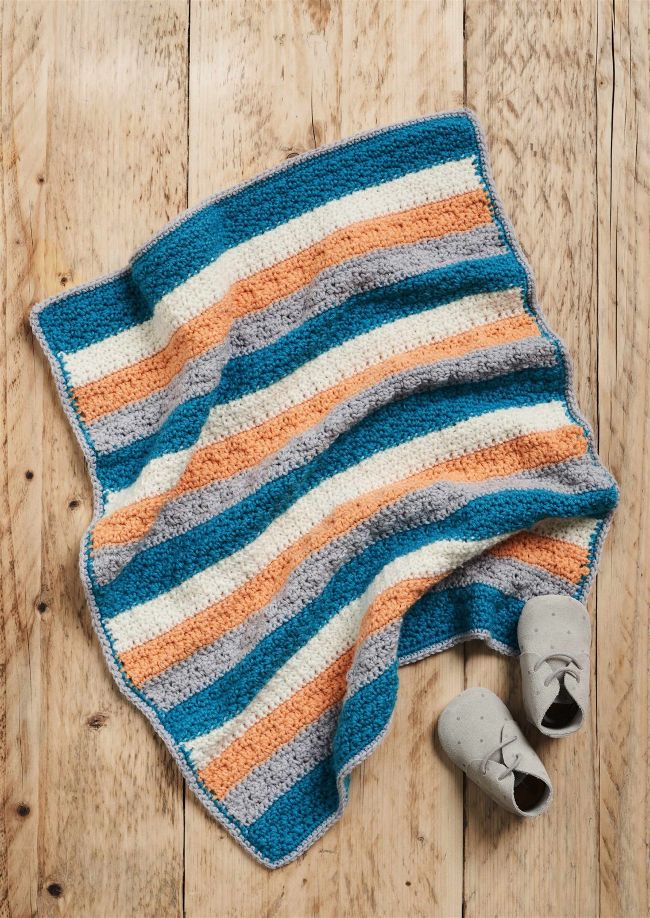 Wrap a little one in warmth and colour with Sally Shepherd’s on-trend baby blanket