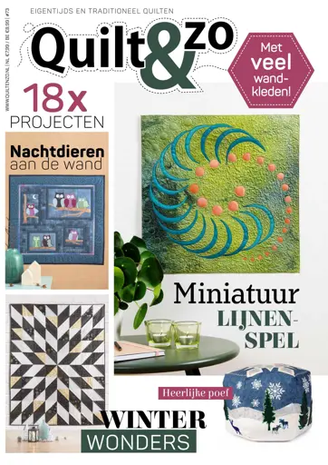 In Quilt & Zo 73 (download) vind je volop inspiratie voor de mooiste wandquilts, maar ook een zachte, winterse poef en kussens. Ga aan de slag met de prachtige stoffen voor de mysteryquilt en laat je verrassen! En met de shopper uit de serie ‘Opbergers’ kun je al je quiltmateriaal op één plek verzamelen! Deze editie staat vol met inspiratie voor winterse projecten. Ook gaan we aan de slag met vele applicaties, zo maak je van al je quilts een echt kunstwerk.