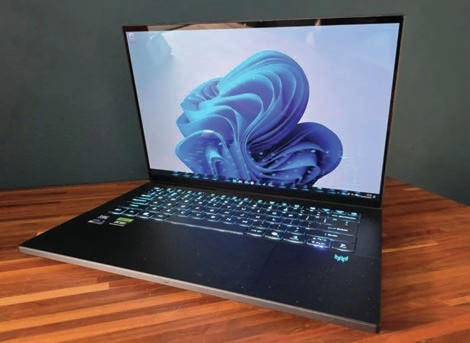 The whole thing is machined from aluminium, with a sleek gunmetal finish and minimal branding, so it’s a lot less conspicuous when the lid’s closed. At 1.58kg and just 17.3mm at its thickest point it’s a world away from the brash and bulky styling I’m used to with gaming laptops; and while gaming grunt. Hopefully that should translate to better battery life than you tend to get on entirely frag-focused machines, which can easily conk out after less than 2hrs of action.