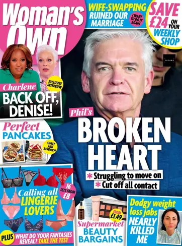 Brace yourself for jaw-dropping confessions of wife-swapping gone wrong, and the shocking desire to do it again. Explore the sweet and savoury sides of your fantasies with our revealing test and find out what your lingerie says about you. Beware of dangerous weight loss jabs that nearly cost a life. Uncover Phillip's struggles of a broken heart and catch the exclusive interview with Charlene as she tell's Denise, back off!