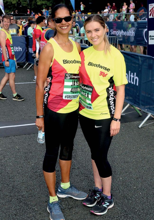 Chelsea (right) with co-star Jaye Griffiths at the start of the Great North Run