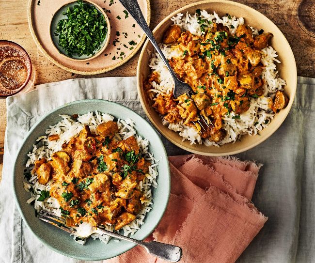 6 Pour over 100ml hot water and simmer for 3-4 mins until the curry has the consistency of double cream. Season to taste, then return the mushrooms to the pan and stir to warm through. Scatter over the chopped coriander and serve with rice or Indian bread, if you like.