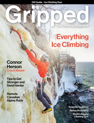 Volume 26 Issue 6 Everything ice climbing: tips, gear and crags! Holiday Gift guide & new books. Winter gym training tips. Featuring Connor Herson, Yosemite, Mount Combatant & the Catamount. Bishop & Kazakhstan Rock.