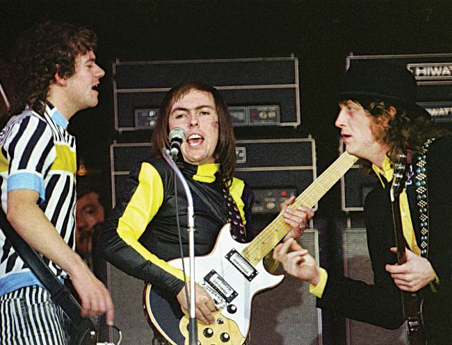 Jim Lea, Dave Hill (with John Birch guitar) and Noddy Holder of Slade