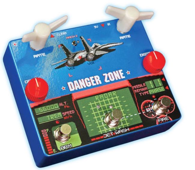 The Danger Zone combines analog tremolo and phaser with tactical fighter cockpit graphics and joystick-style controls. But before you dismiss its retro video-game-console looks, everything about the Danger Zone is designed for complete control and engaging functionality, not to mention the fact that its interactive tremolo and phaser effects can be set up for over-the-top chop and sweep or dialed back for more stealth-like modulations.