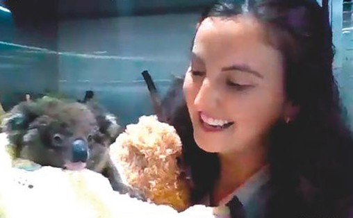 A highlight of William and Kate’s chat (below) with people affected by Australia’s January wildfires is meeting (bottom) Grace the rescued koala and her handler Dana Mitchell, from the Kangaroo Island Wildlife Park
