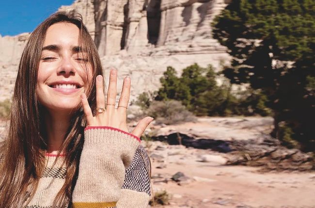 Far from looking misérable, actress Lily Collins has been the picture of happiness since getting engaged to director Charlie McDowell during a trip to New Mexico (above). Keen to share her delight with fans and friends around the world, the Les Misérables star posted photos of the trip – and the proposal – on Instagram and described being newly engaged as “the purest joy I’ve ever felt”.