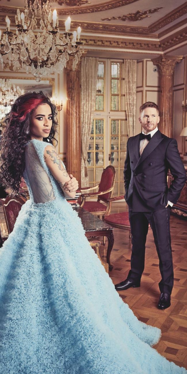 (LEFT) NEIL’S SUIT: GIEVES & HAWKES. SHIRT & SHOES: HAWES & CURTIS. BOW TIE: REISS. LUISA’S GOWN: ATELIER ZUHRA. EARRINGS: LARA HEEMS JEWELLERY. (RIGHT) SHIRT: REISS