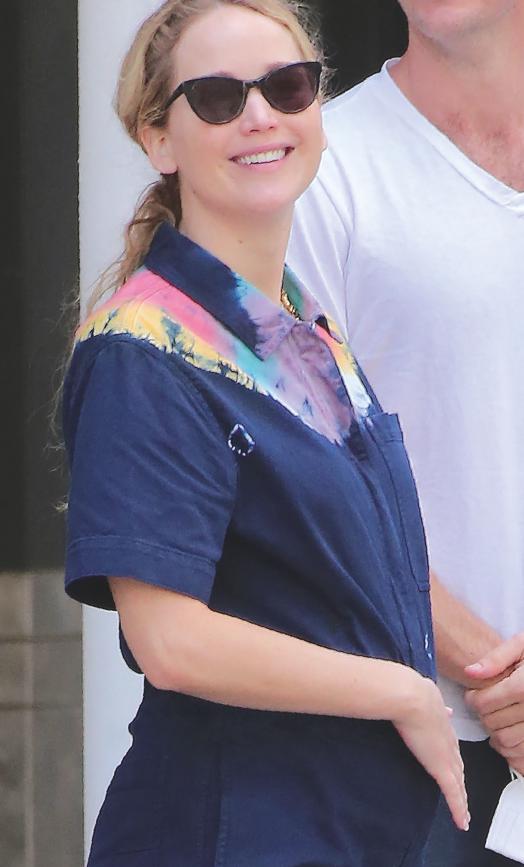 Still getting used to the idea of becoming a Mother! herself, Jennifer Lawrence could not resist placing a protective hand on her baby bump (left) while exploring New York’s SoHo neighbourhood with her husband Cooke Maroney.