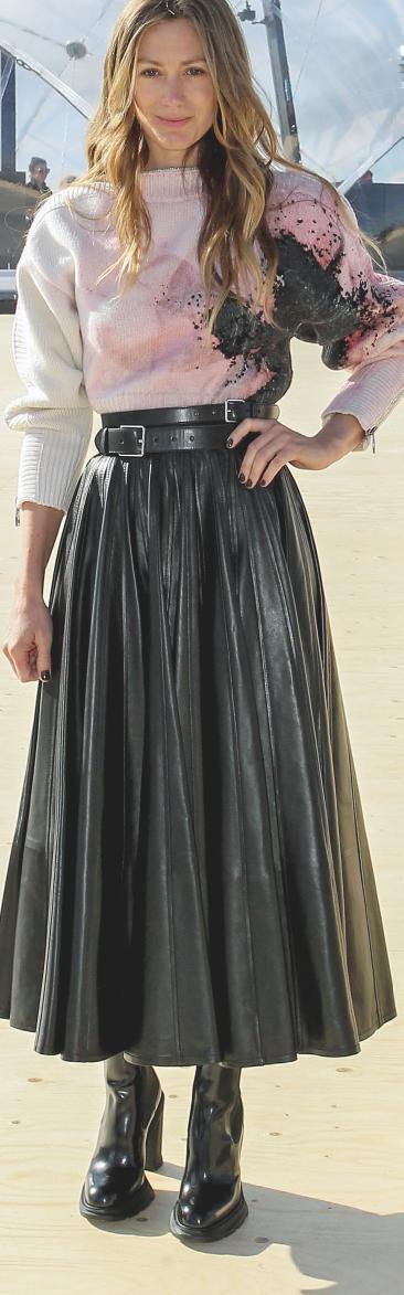 Hannah Bagshawe pairs a jumper with a pleated skirt while