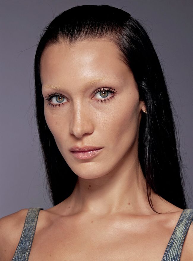 Inky, elongated lashes stole the show at Givenchy. But we’re not talking about doll-like eyes; here, the hairs are clumped together to create a more graphic, spiky finish. Set against bleached brows and glossy, natural skin, a stark, bulky lash line reads more grunge than glamorous. To get the look, there is a wave of new double-sided mascara wands you need to know about. The idea is to use one side to layer on product and lengthen lashes, then flip it over and use the other side to sculpt and add definition.