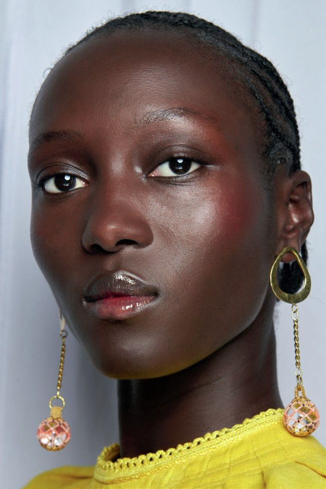 This painterly lip look was the talking point at Ulla Johnson, where the pink pigment was concentrated in the centre of the mouth, under a glistening gloss. Bobbi Brown makeup artist Romy Soleimani created a two-tone finish, using a softening, satin orange lipstick as the base and then patting on the bright pink hue. Romy finished with a coat of Bobbi Brown’s gloss shimmer to give lips a cushiony look with a glassy shine.